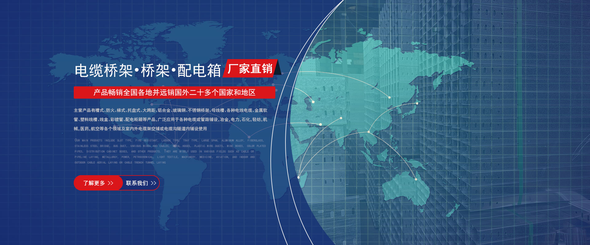 主營(yíng)產(chǎn)品有槽式、防火、梯式、托盤(pán)式、大跨距、鋁合金、玻璃鋼、不銹鋼橋架、母線(xiàn)槽、各種電線(xiàn)電纜、金屬軟管、塑料線(xiàn)槽、線(xiàn)盒、彩鍍管、配電柜箱等產(chǎn)品,式多樣,結(jié)構(gòu)新穎,連接牢靠,強(qiáng)度密封性好,產(chǎn)品暢銷(xiāo)全國(guó)各地,遠(yuǎn)銷(xiāo)國(guó)外二十多個(gè)國(guó)家和地工,深受?chē)?guó)內(nèi)外用戶(hù)的好評(píng),竭誠(chéng)歡迎海內(nèi)外朋友蒞臨合作